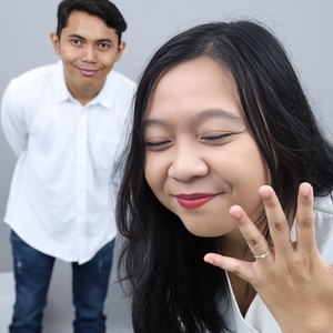 Pasangan yang berbahagia dan telah membuat undangan pernikahan mereka di WebNikah.com.