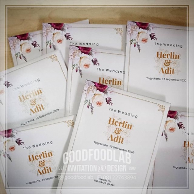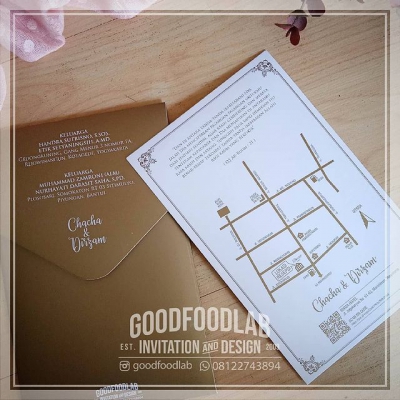 Undangan Single Softcover + Amplop Chacha & Dirzam Yogyakarta Cetak Monokrom Gold + Hotprint, Kertas Ivory Doft Desain Bisa Request Free Edit Foto